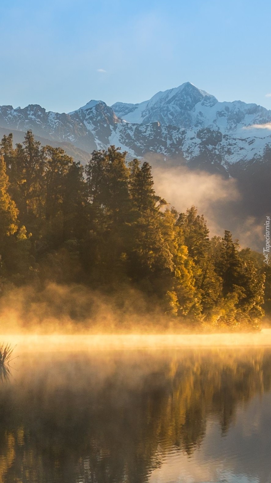 Edytor tapety: Zamglone jezioro o poranku