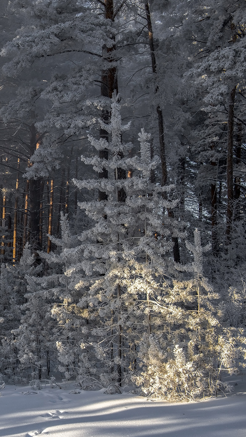 Edytor tapety: Drzewa ośnieżone w lesie