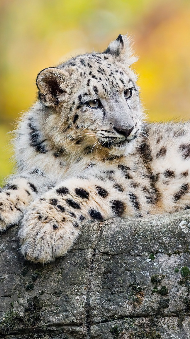 Edytor tapety: Irbis śnieżny na skale