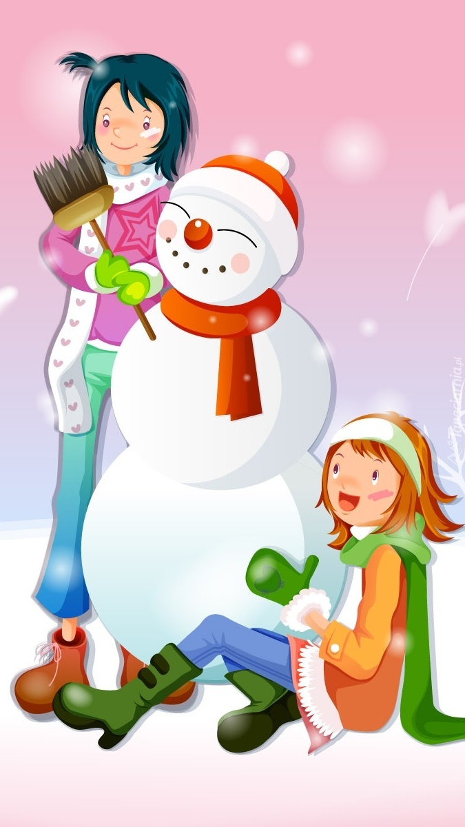 Edytor tapety: Zimowa zabawa z bałwanem