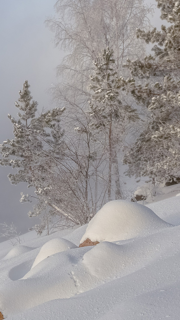 Edytor tapety: Ośnieżone drzewa we mgle