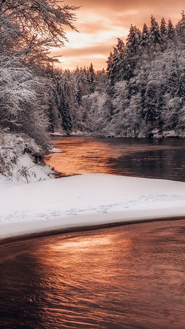 Edytor tapety: Ośnieżone drzewa nad rzeką