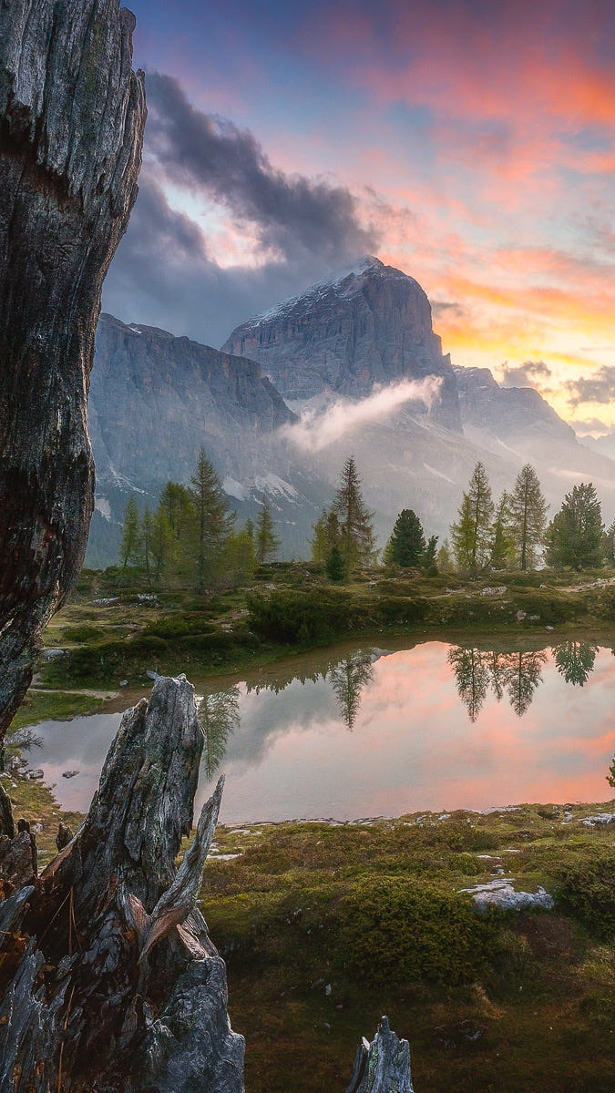 Edytor tapety: Staw i mgła nad górami