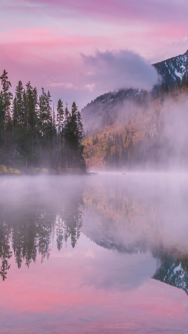Edytor tapety: Górskie jezioro String Lake we mgle