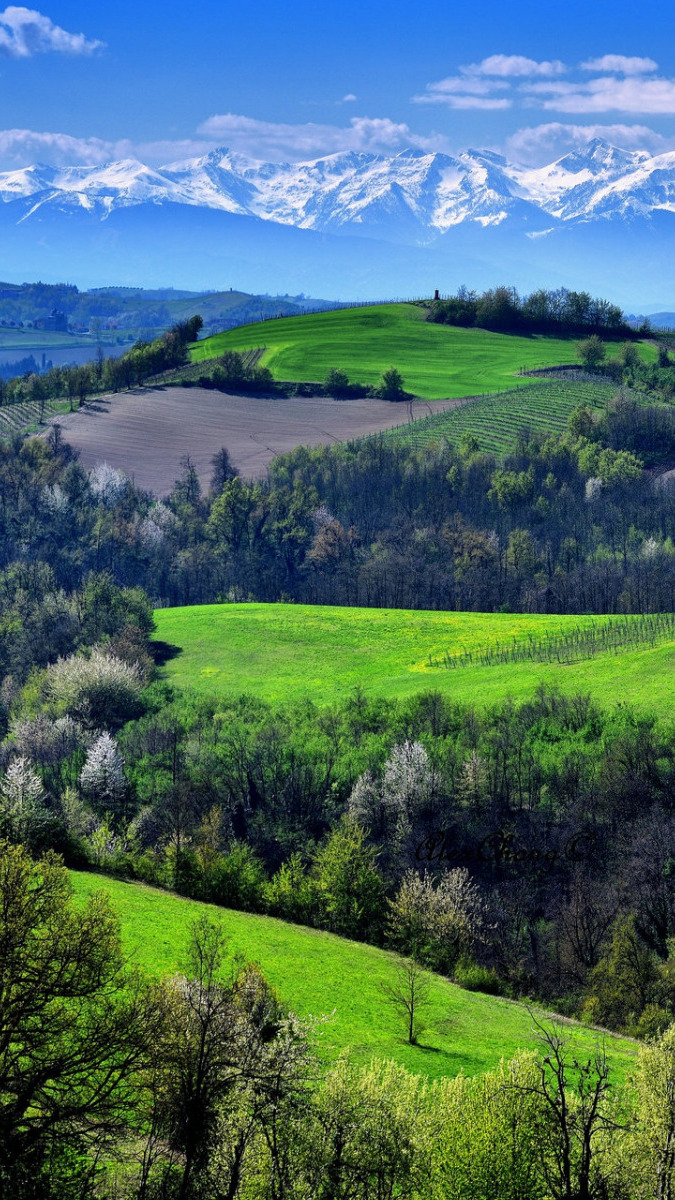Edytor tapety: Drzewa i winnice na wzgórzach