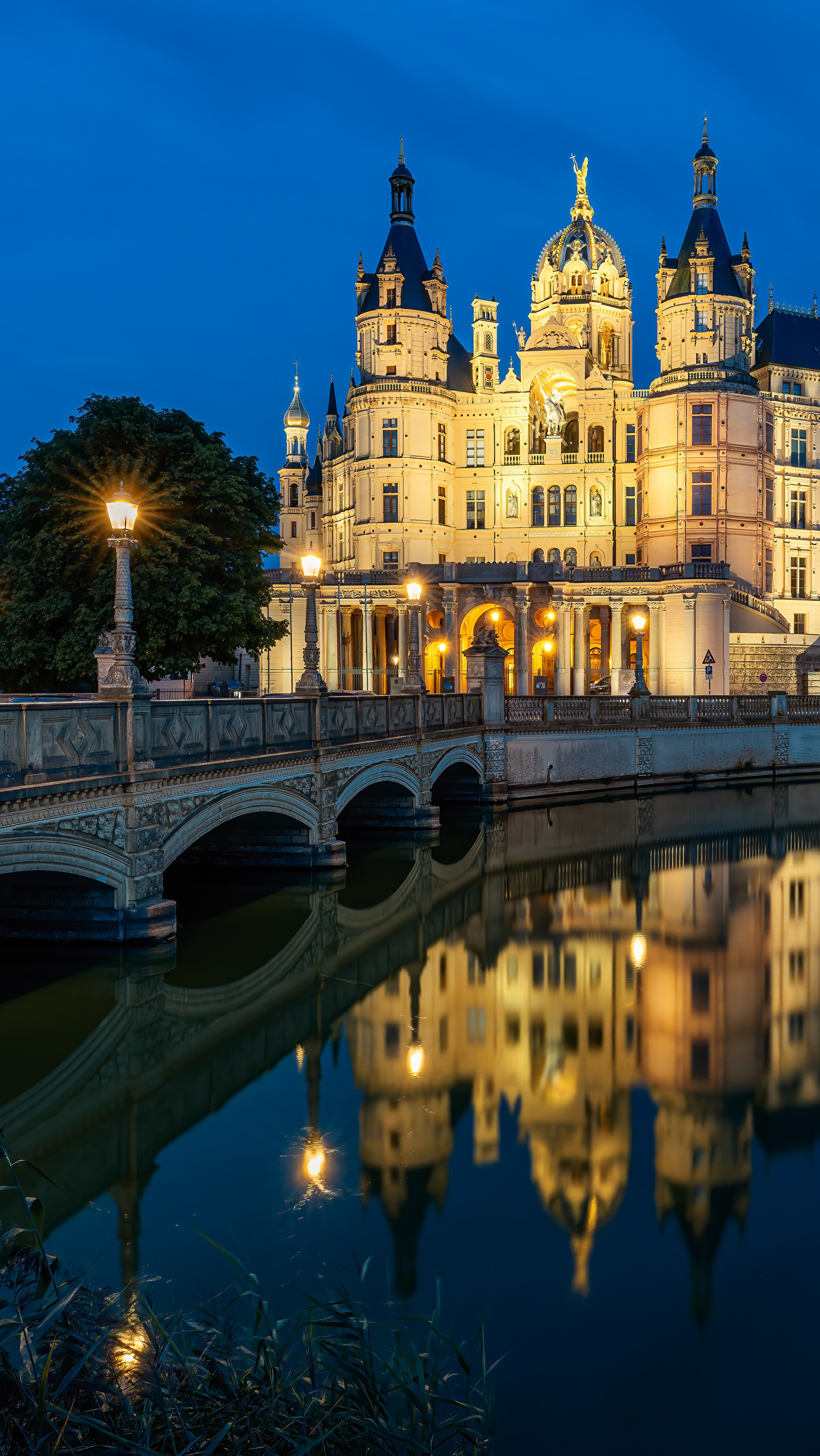 Edytor tapety: Oświetlony Zamek w Schwerinie