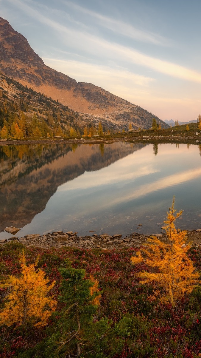 Edytor tapety: Jesienne drzewka nad górskim jeziorem