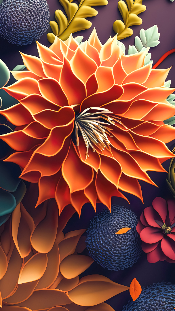 Edytor tapety: Kolorowe kwiaty i liście w grafice