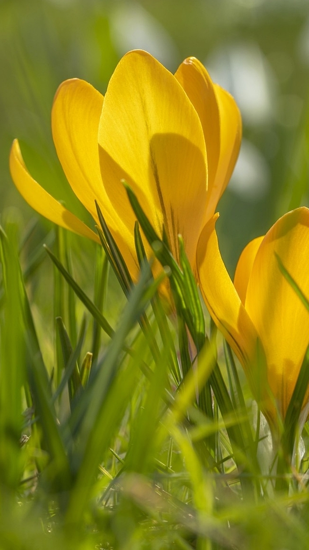 Edytor tapety: Żółte krokusy w kępce