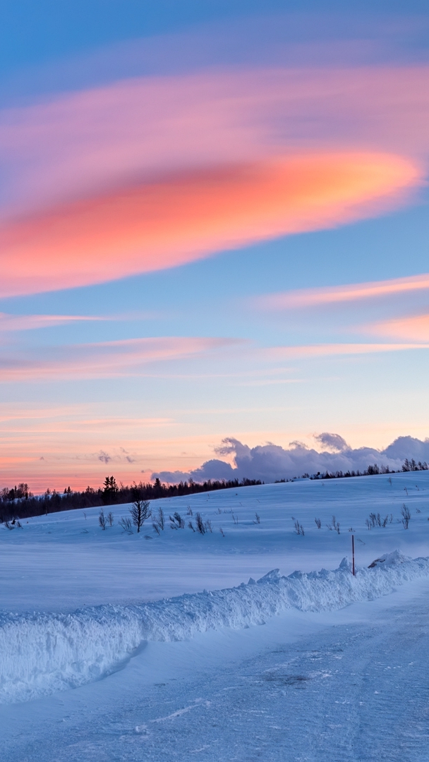 Edytor tapety: Kolorowe niebo nad zaśnieżona drogą