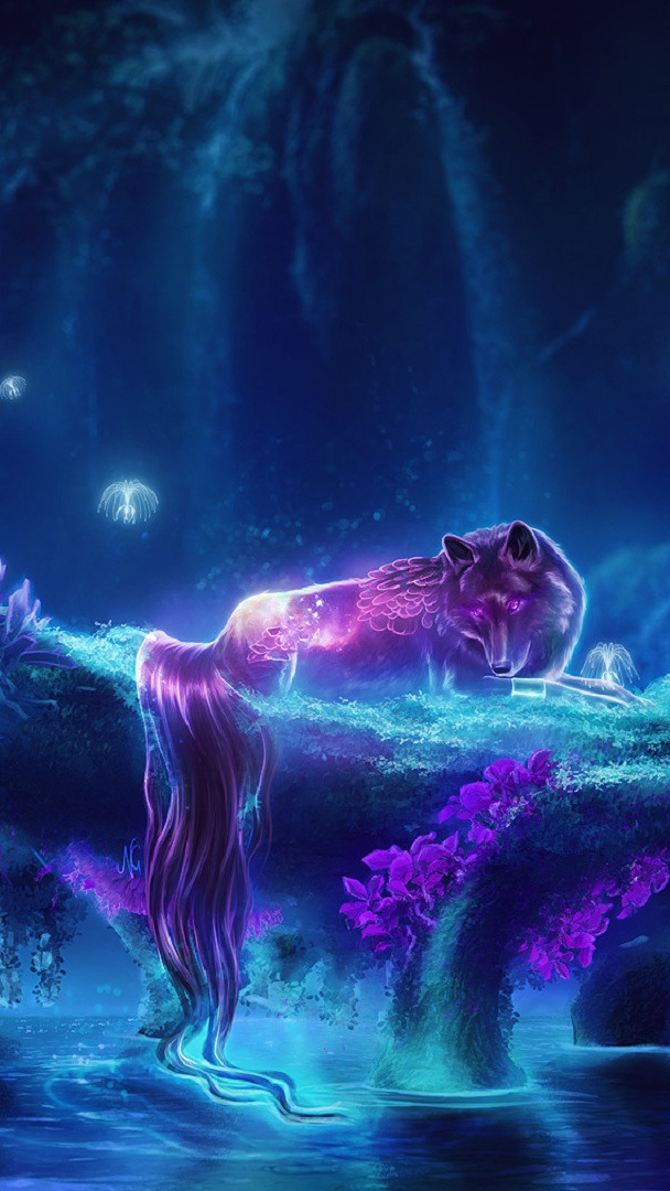 Edytor tapety: Wilk w grafice fantasy