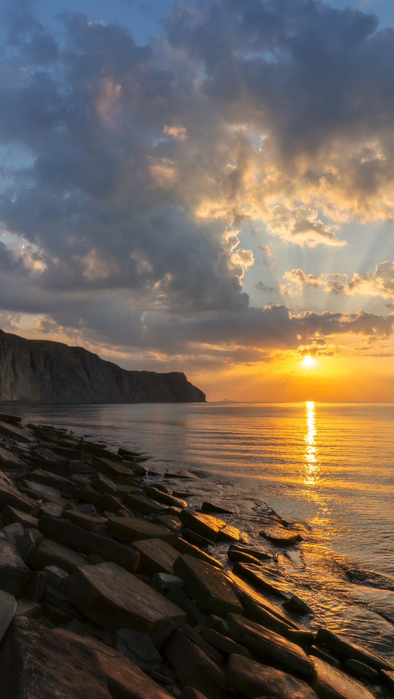 Edytor tapety: Wybrzeże morskie o zachodzie słońca