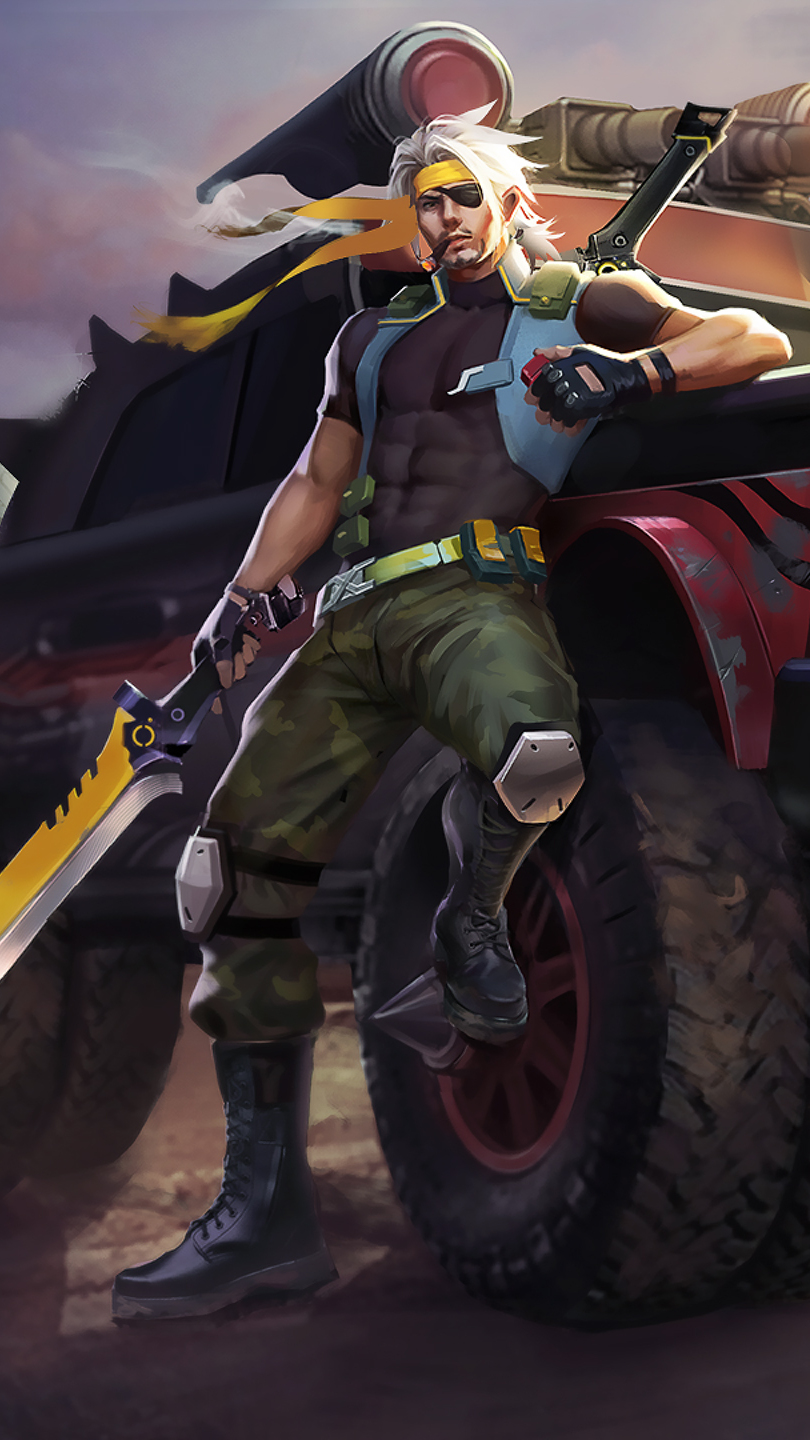 Edytor tapety: Mężczyzna z nożem przy samochodzie