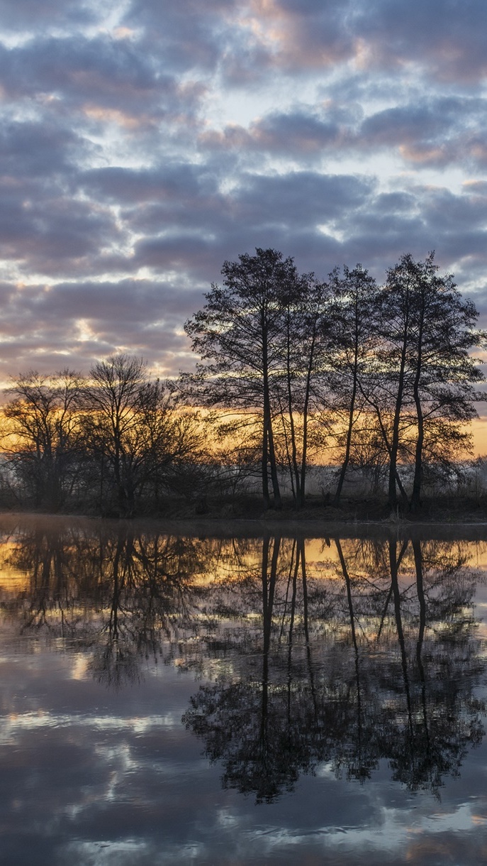 Edytor tapety: Odbicie chmur i drzew w rzece
