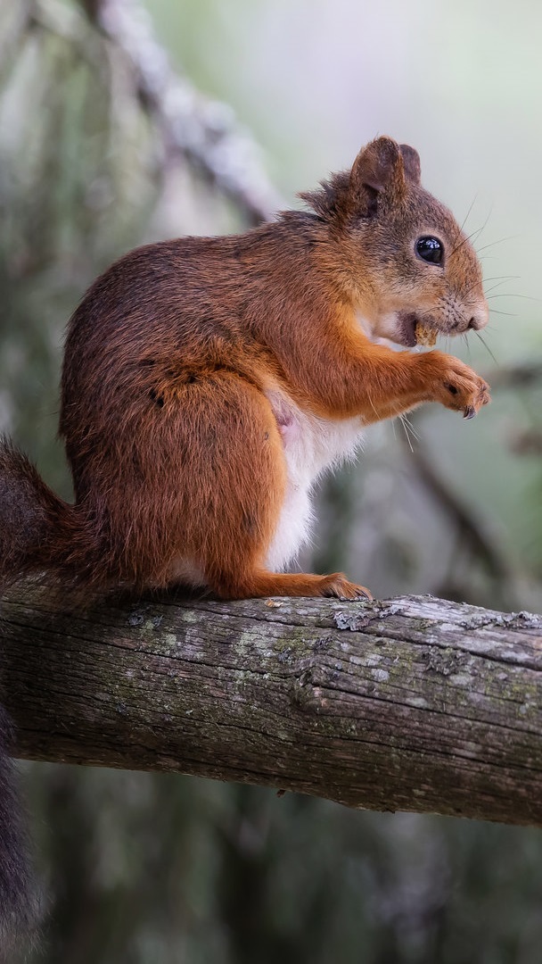 Edytor tapety: Wiewiórka na drewnianej poręczy