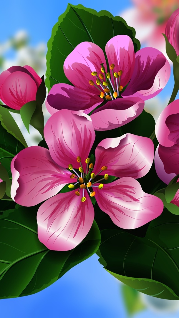 Edytor tapety: Różowe kwiaty w grafice
