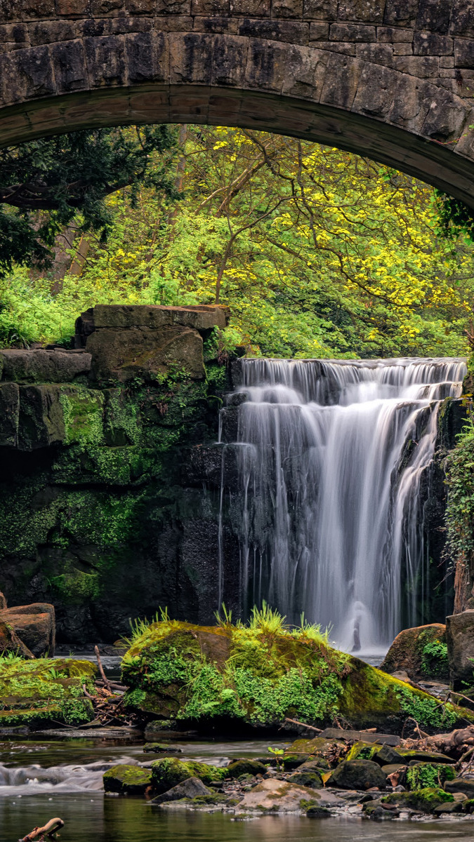 Edytor tapety: Wodospad Jesmond Dean Waterfall pod mostem