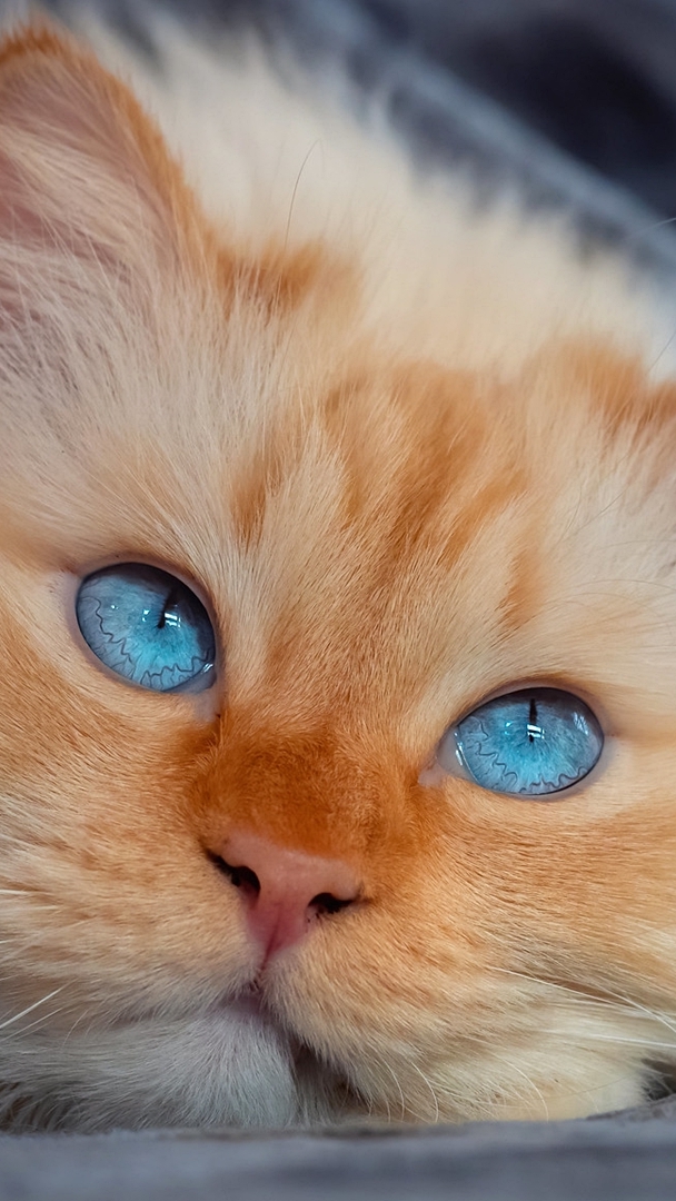 Edytor tapety: Mordka rudego niebieskookiego kota w zbliżeniu