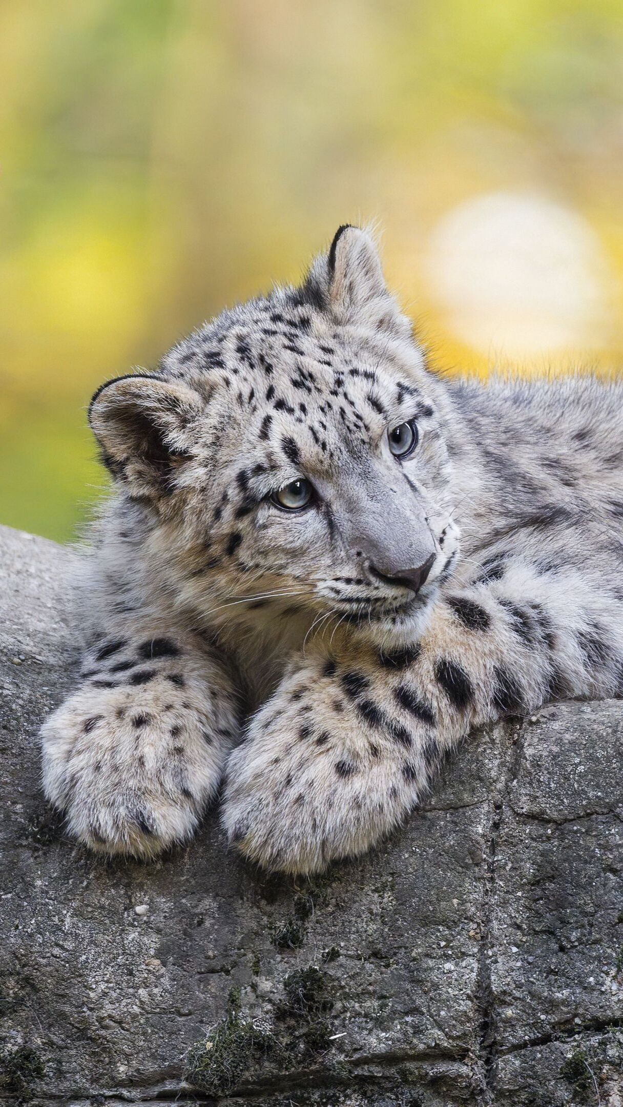 Edytor tapety: Młody irbis odpoczywający na skale