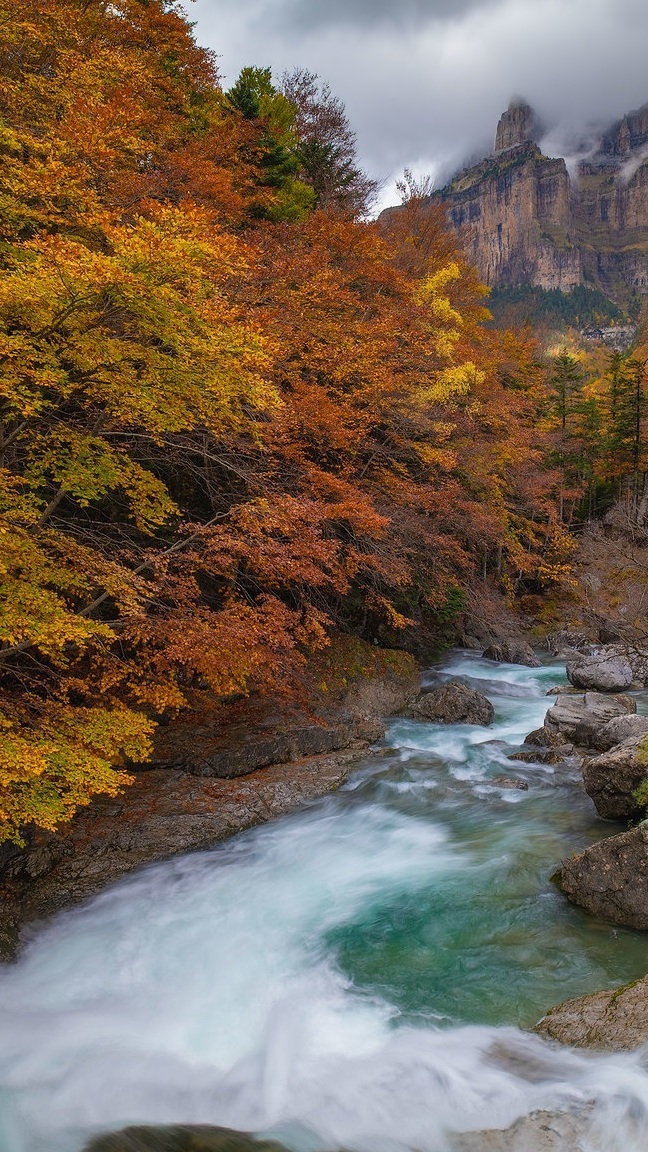 Edytor tapety: Jesienne drzewa nad górską rzeką