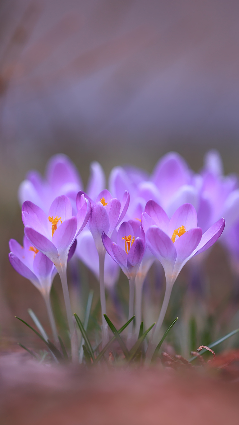Edytor tapety: Kępka jasnofioletowych krokusów