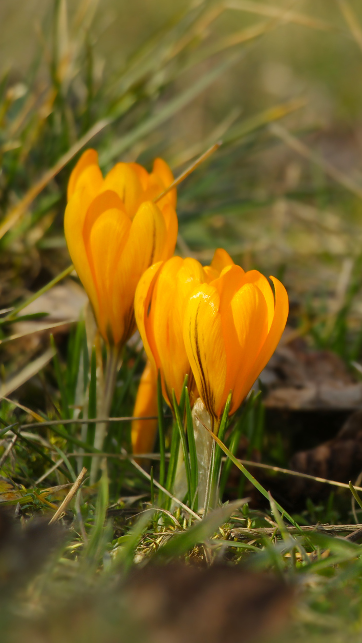 Edytor tapety: Rozświetlone rozkwitające żółte krokusy