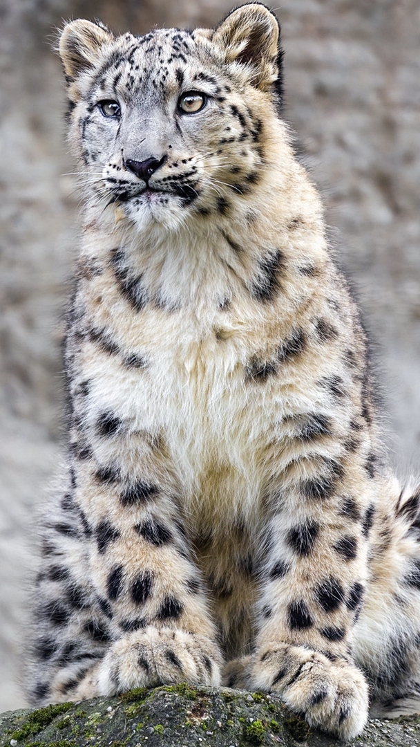 Edytor tapety: Siedzący na skale irbis śnieżny