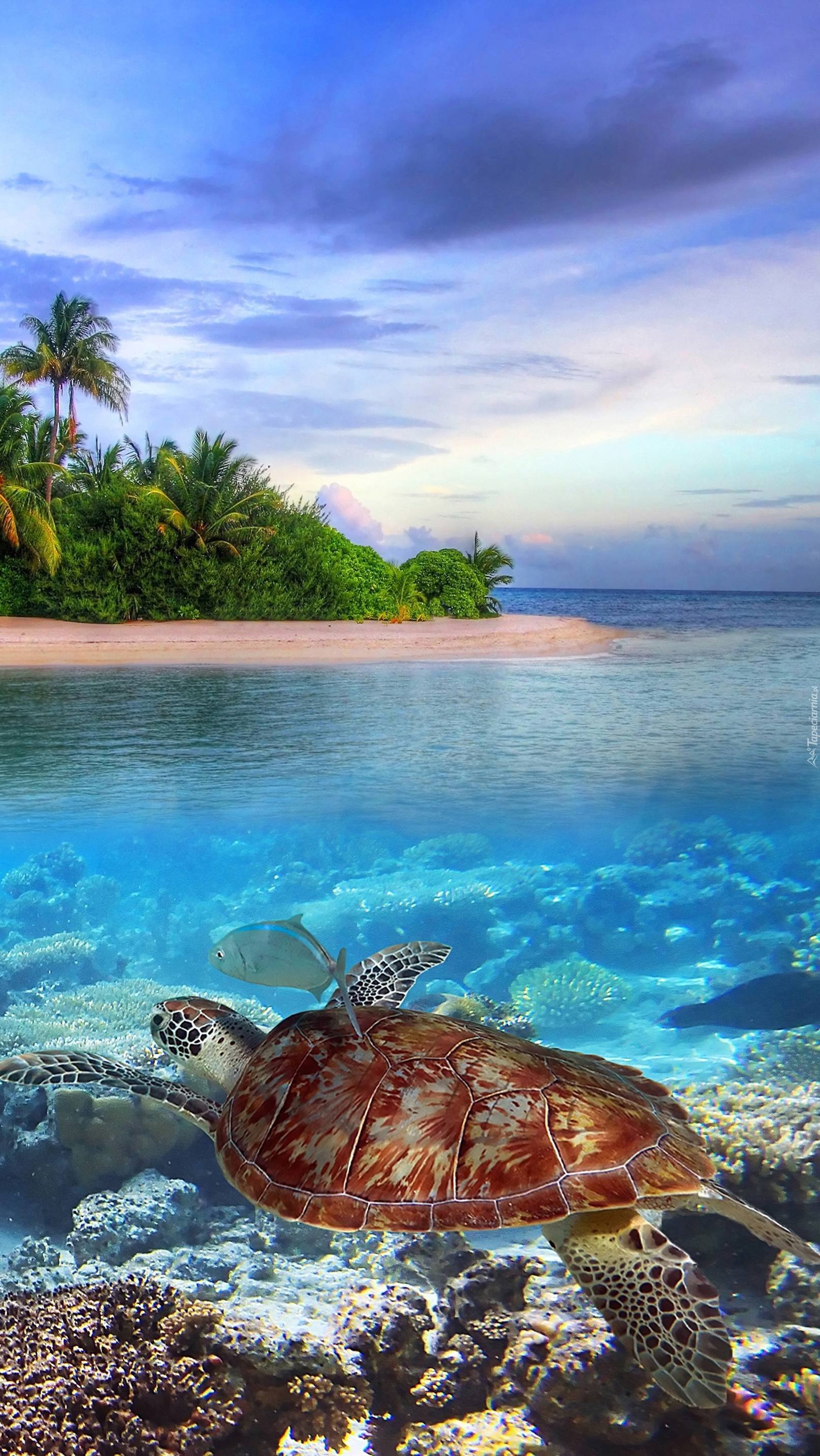 Edytor tapety: Pływający żółw wodny na rafie