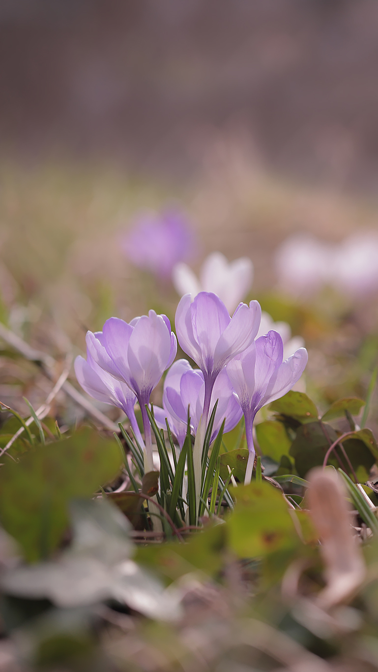 Edytor tapety: Kępka jasnofioletowych krokusów