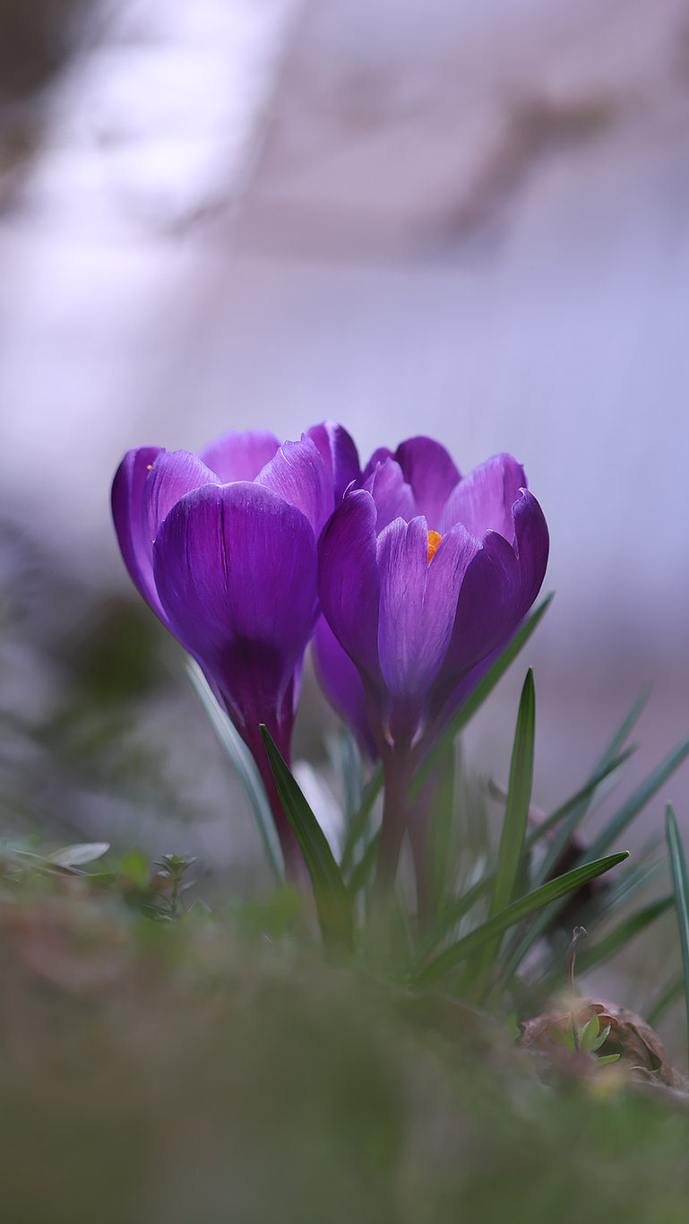 Edytor tapety: Dwa ciemnofioletowe krokusy