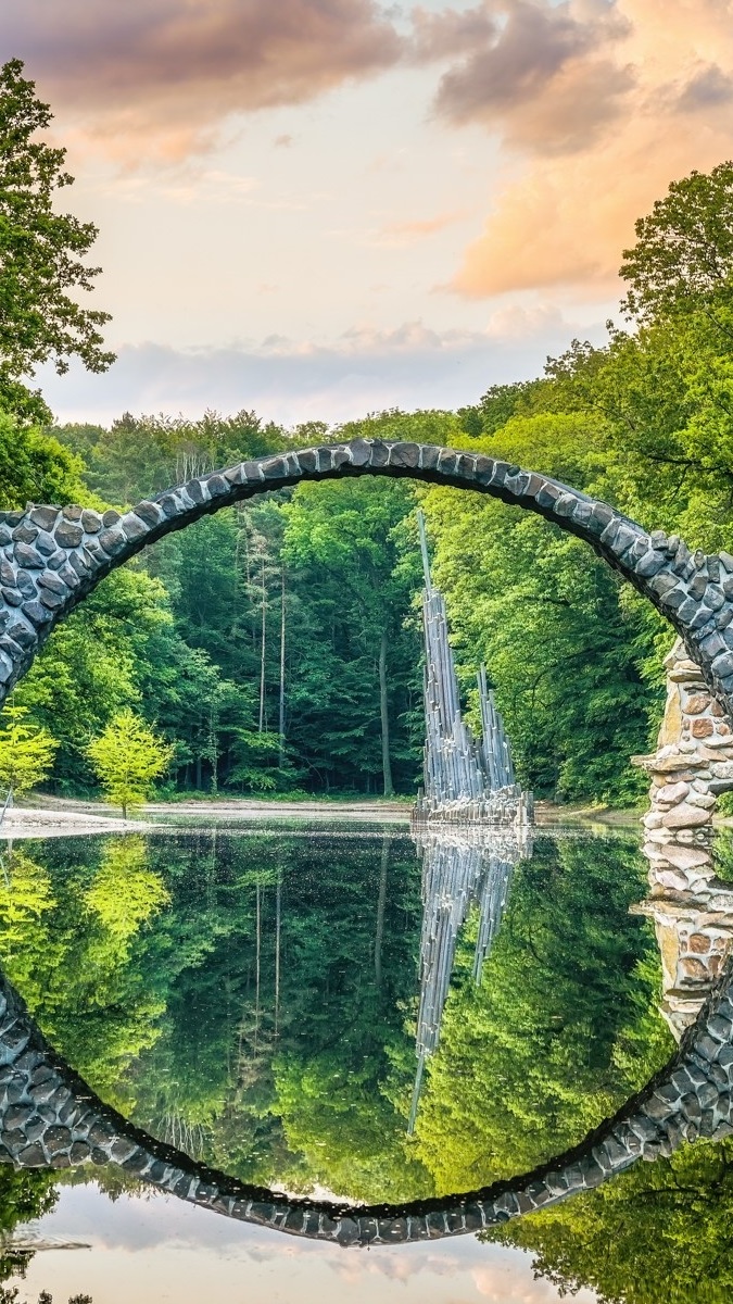 Edytor tapety: Odbicie Mostu Diabła w jeziorze Rakotz