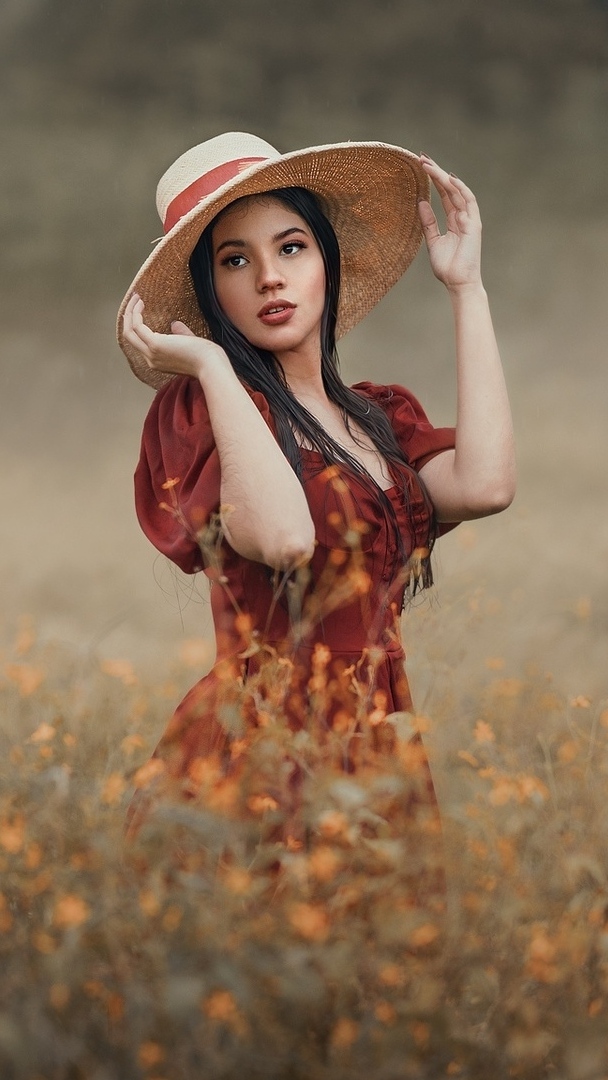 Edytor tapety: Dziewczyna w kapeluszu na łące