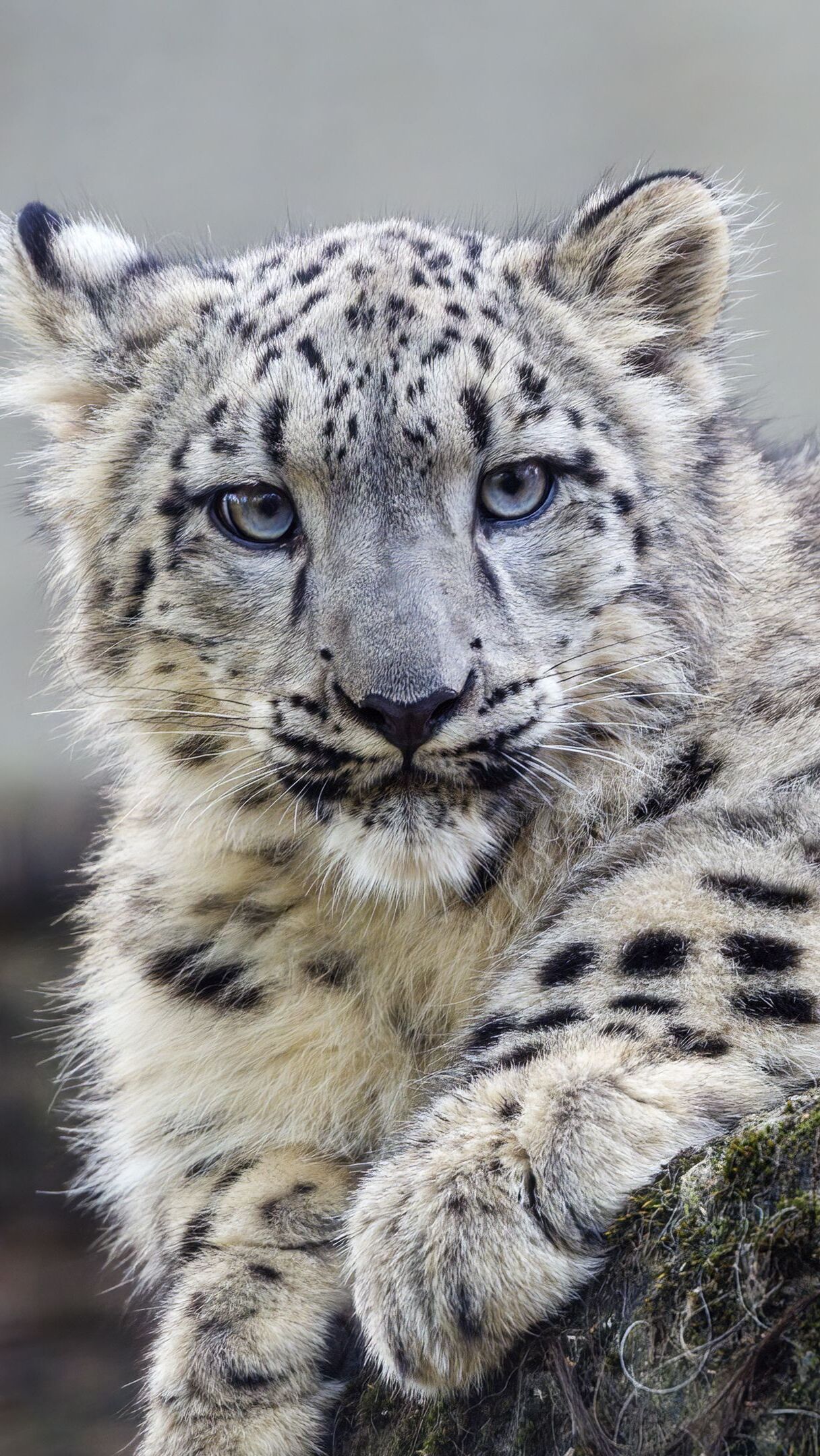 Edytor tapety: Młody irbis śnieżny leżący na skale