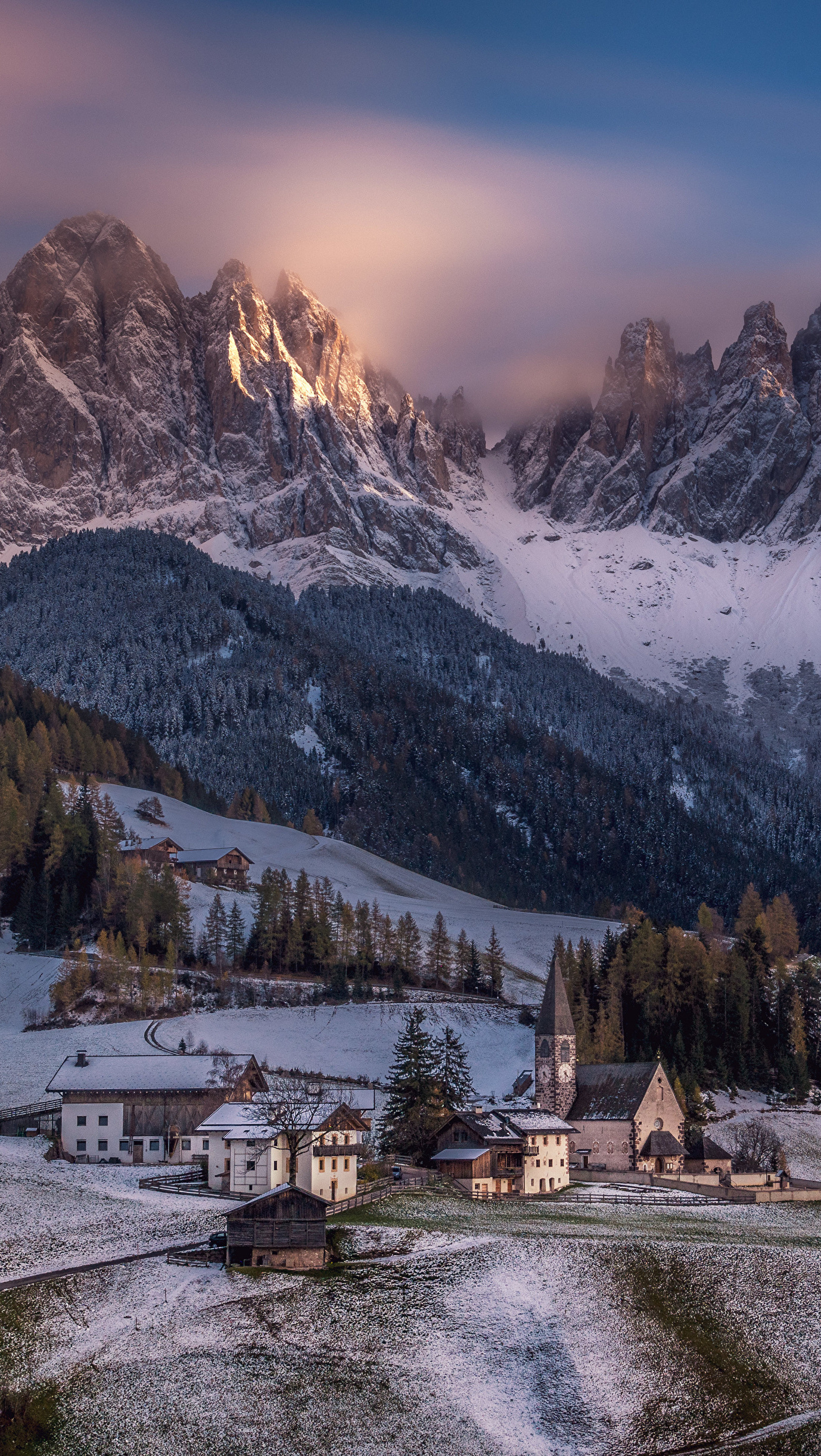 Edytor tapety: Wioska Santa Maddalena w Dolomitach zimą