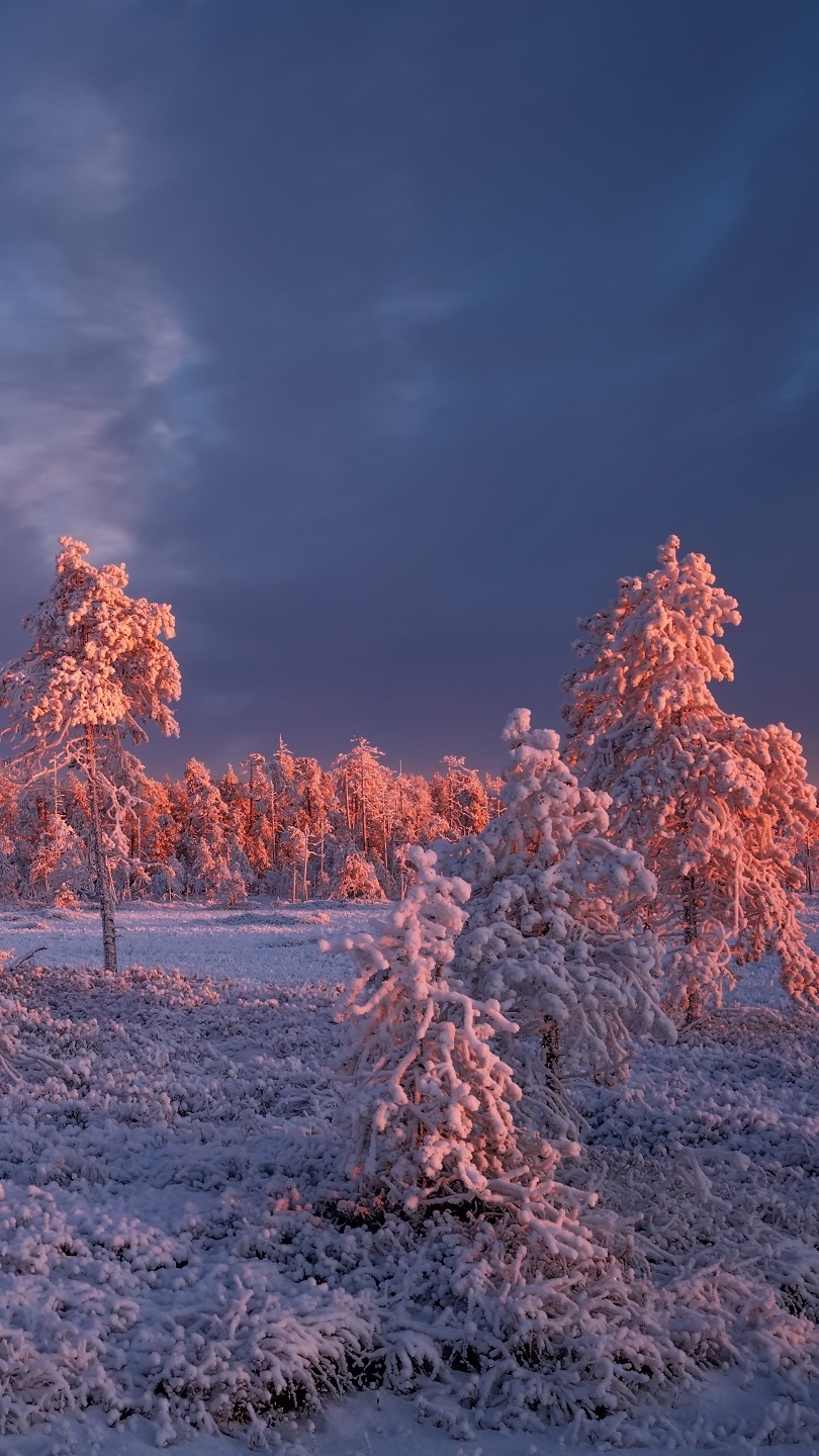 Edytor tapety: Rozświetlone oszronione drzewa