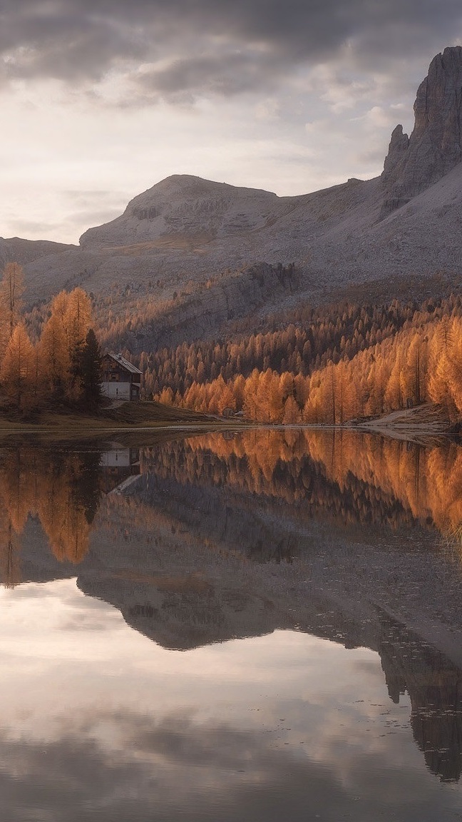Edytor tapety: Jesienne drzewa nad jeziorem Lago Federa