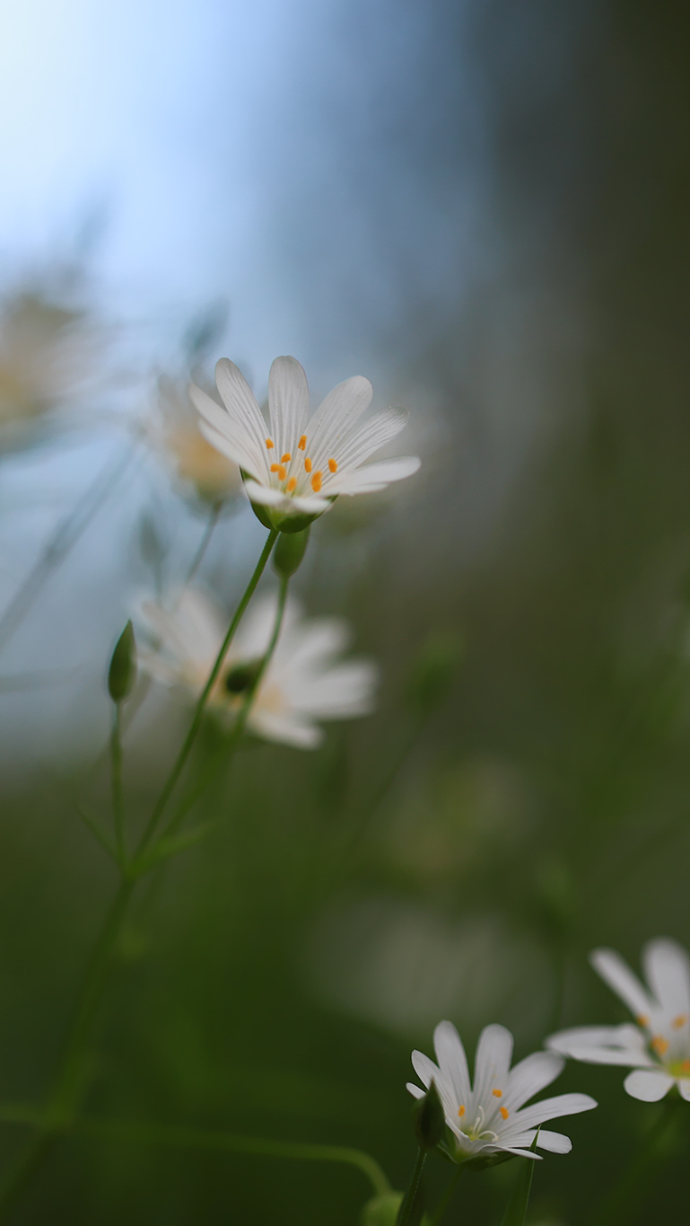 Edytor tapety: Białe kwiaty gwiazdnicy wielkokwiatowej