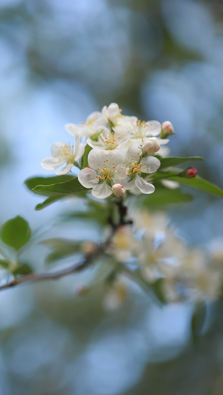 Edytor tapety: Gałązka z białymi kwiatami jabłoni