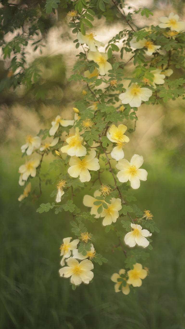 Edytor tapety: Gałązki z żółtymi kwiatami dzikiej róży
