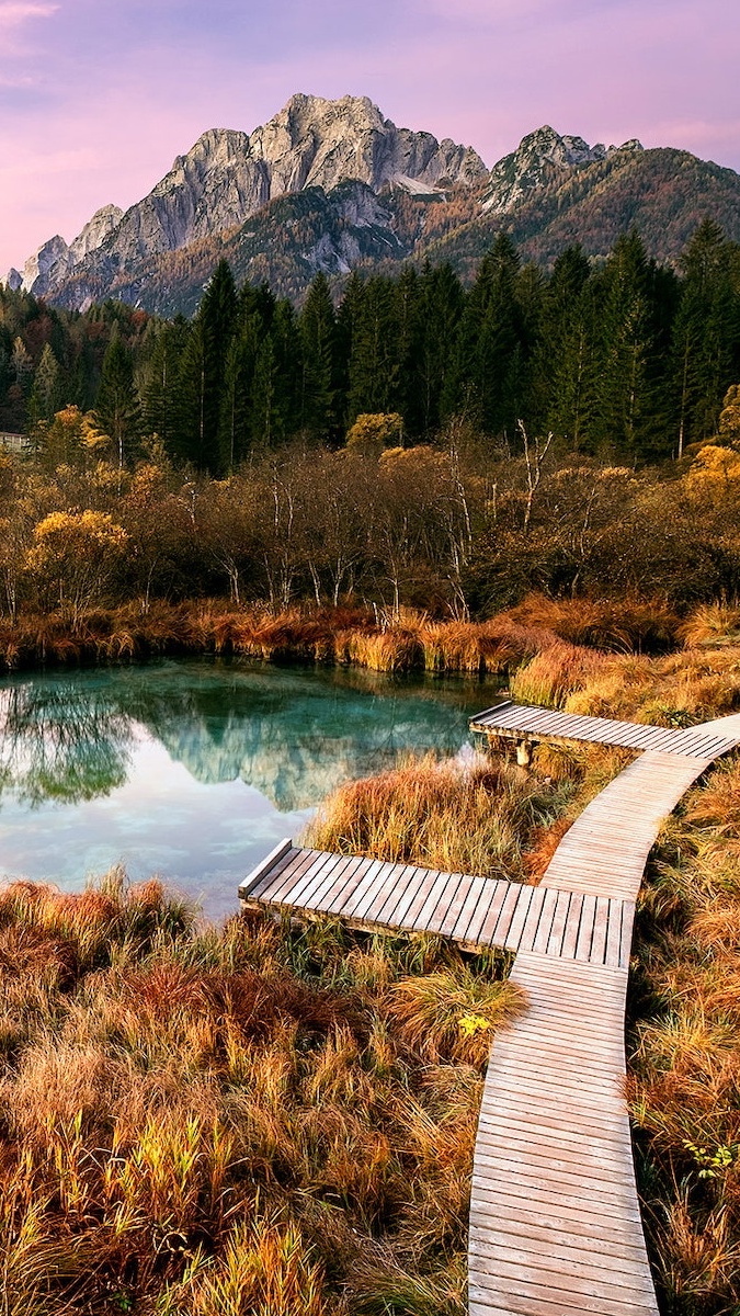 Edytor tapety: Pomost nad jeziorem Zelenci w Słowenii