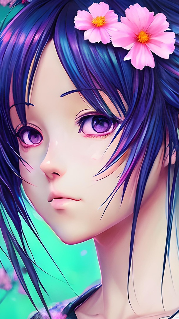 Edytor tapety: Różowe kwiaty we włosach dziewczyny