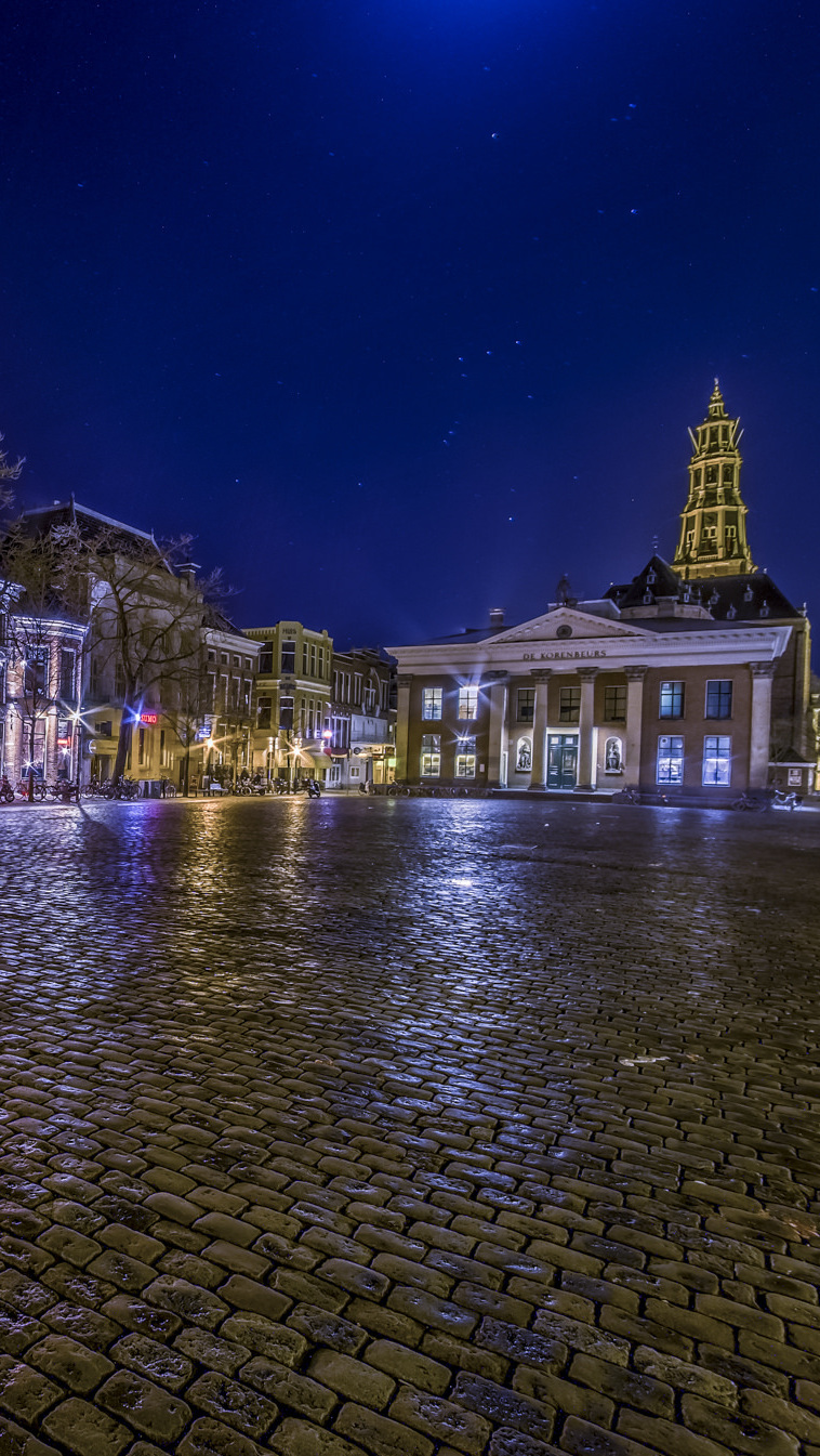 Edytor tapety: Oświetlone miasto Groningen w Holandii
