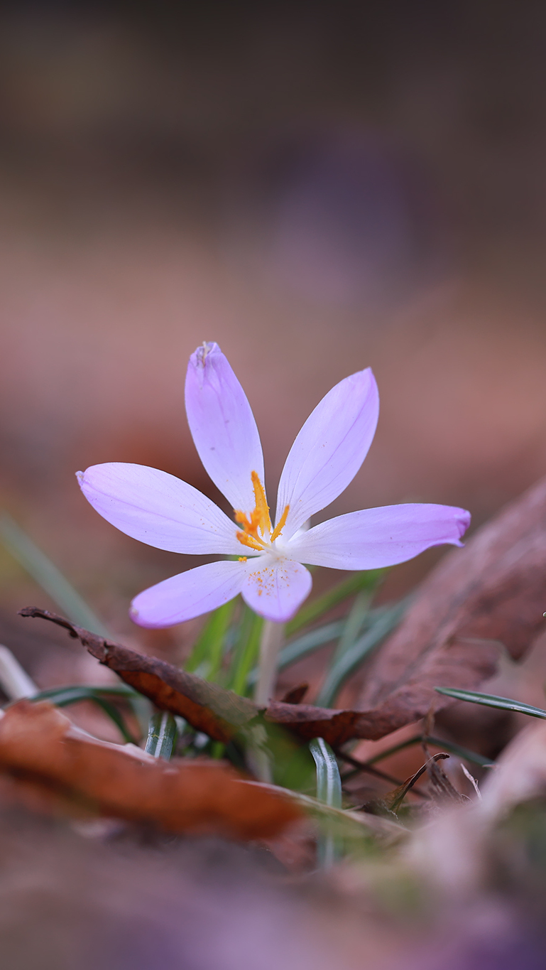 Edytor tapety: Liliowy krokus w suchych liściach