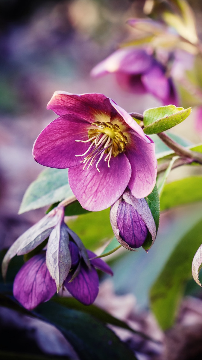 Edytor tapety: Fioletowe ciemierniki z liśćmi