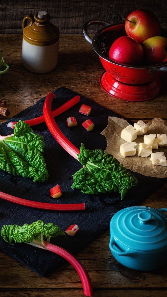 Edytor tapety: Rabarbar i naczynia na stole