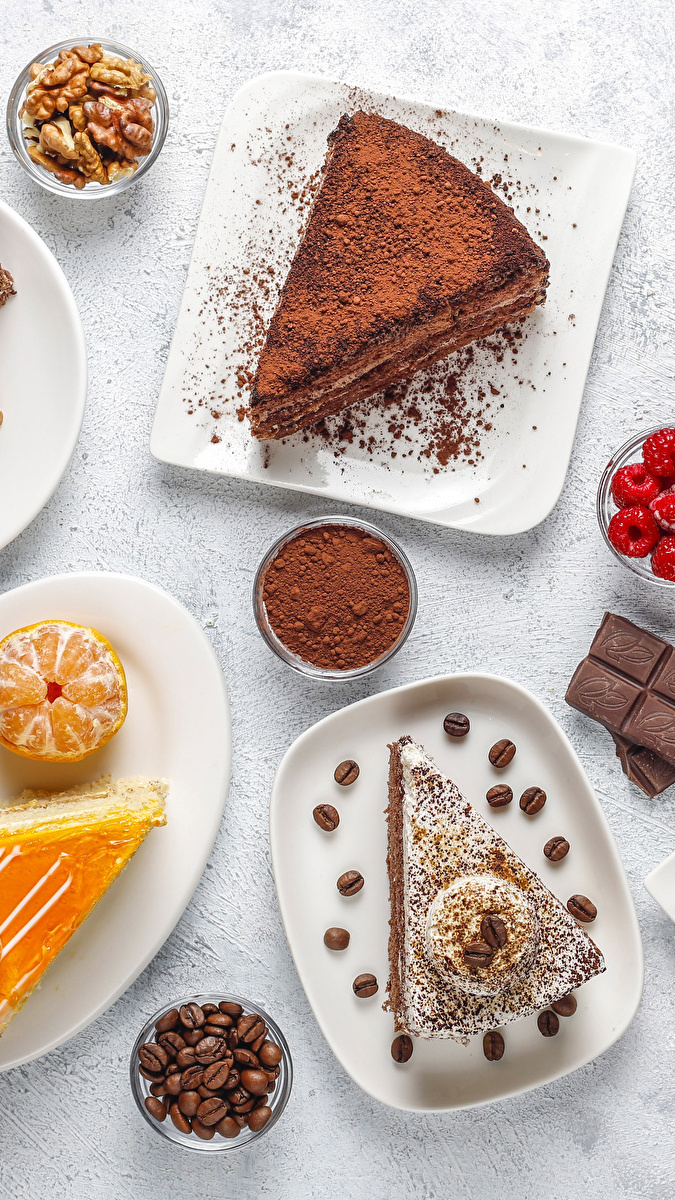 Edytor tapety: Różne kawałki ciast na talerzykach