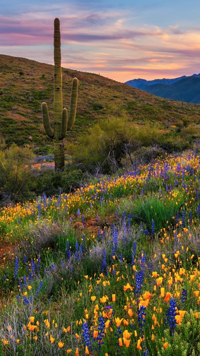 Edytor tapety: Kaktus na ukwieconej łące