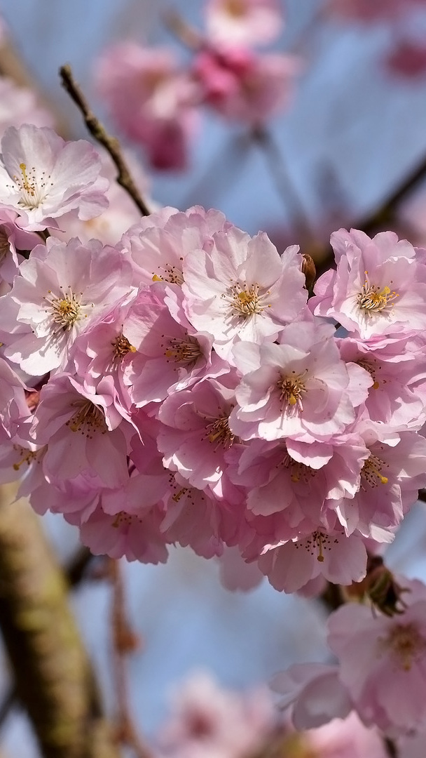 Edytor tapety: Rozświetlone kwiaty kwitnącej wiśni