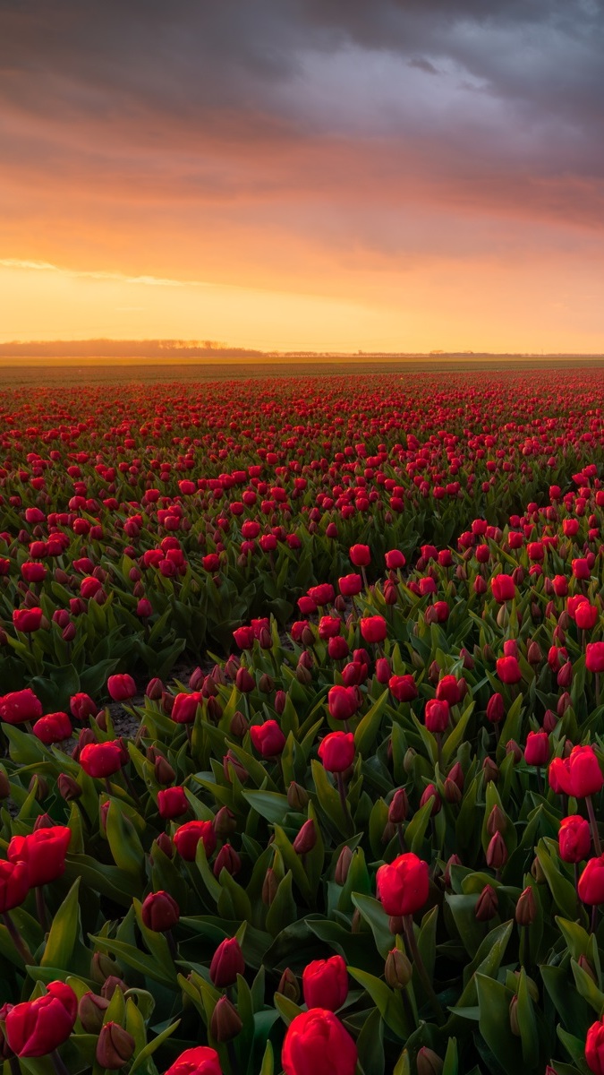 Edytor tapety: Plantacja czerwonych tulipanów