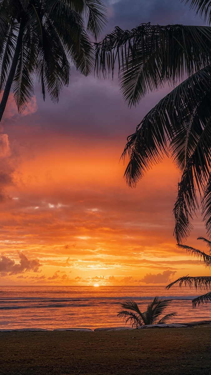 Edytor tapety: Palmy i zachód słońca nad morzem